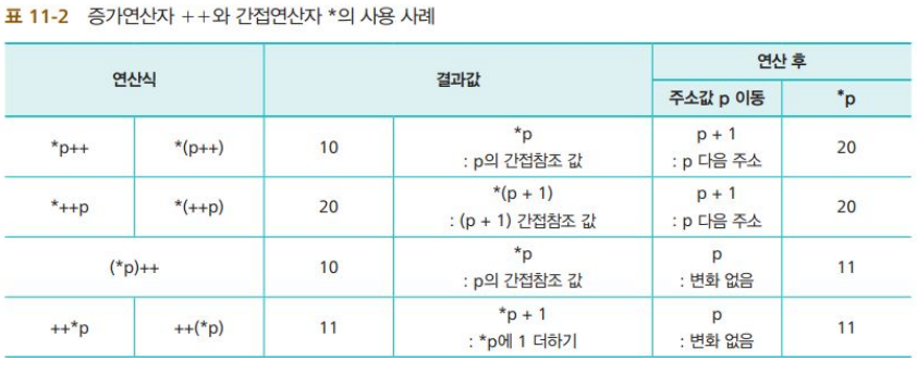 포인터 연산의 특성을 떠올리면 다음의 표를 쉽게 이해할 수 있을 것이다.